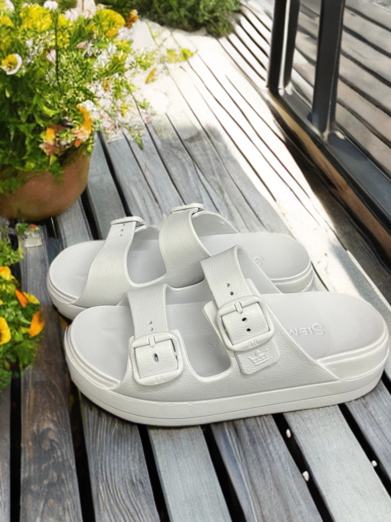 Características principales: - Material: Goma - Plataforma: 4 cm de altura - Ajuste: Hebilla regulable para mayor comodidad