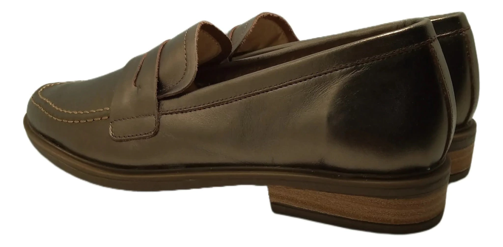 Este mocasín clásico para mujer es el complemento perfecto para cualquier outfit. Confeccionado en cuero de alta calidad, brinda comodidad y estilo a partes iguales. Su diseño de punta vincha y suela de goma lo hacen ligero y fácil de llevar en cualquier ocasión. Ideal para mujeres que buscan un calzado elegante y versátil.