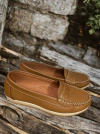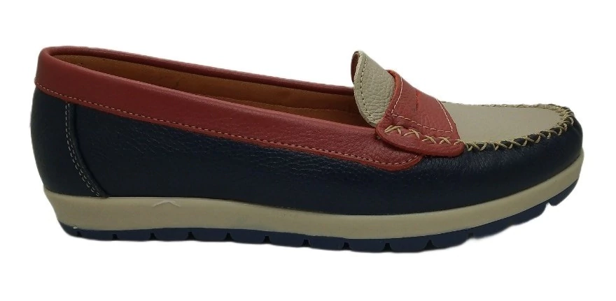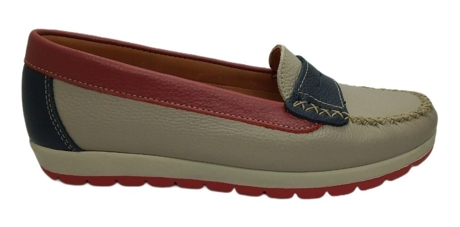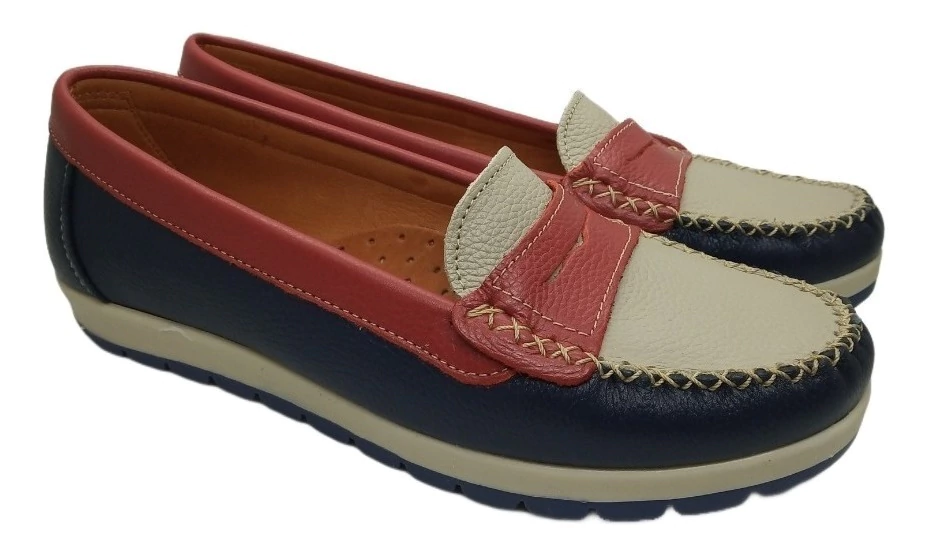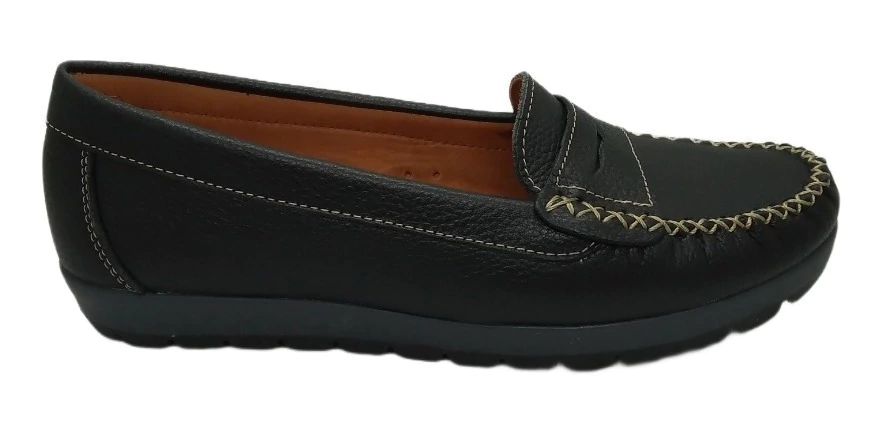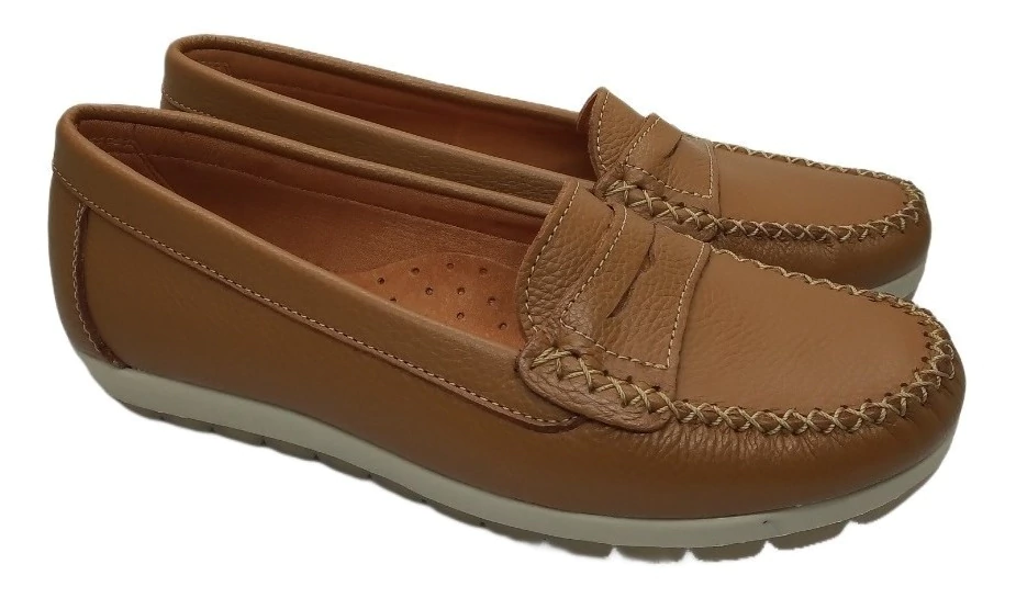 Mocasín de cuero con vincha .Base de goma antideslizante. Super livianos y confortables.