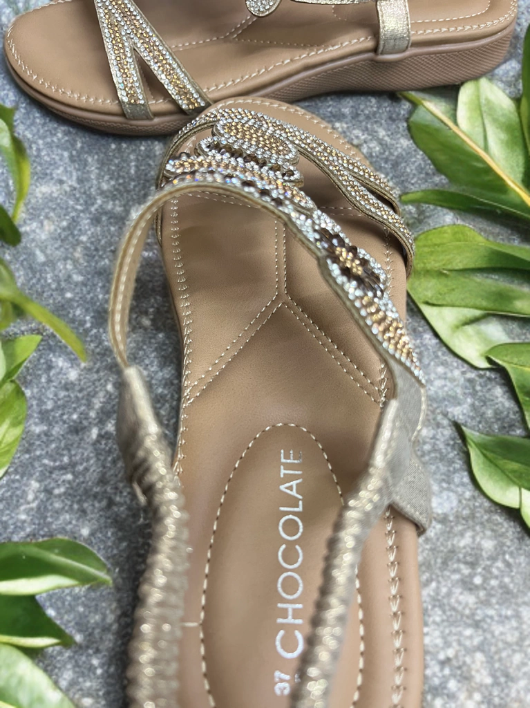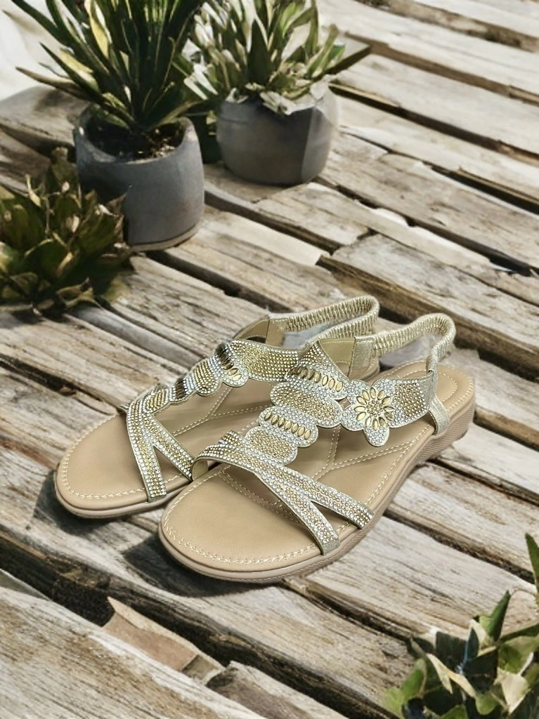 Descubrí la Sandalia 126KA71 con un elegante aplique de piedras y strass en su capellada que aporta un brillo ideal para cualquier momento del día. Su ajuste al talón con elástico garantiza un calce seguro y cómodo.