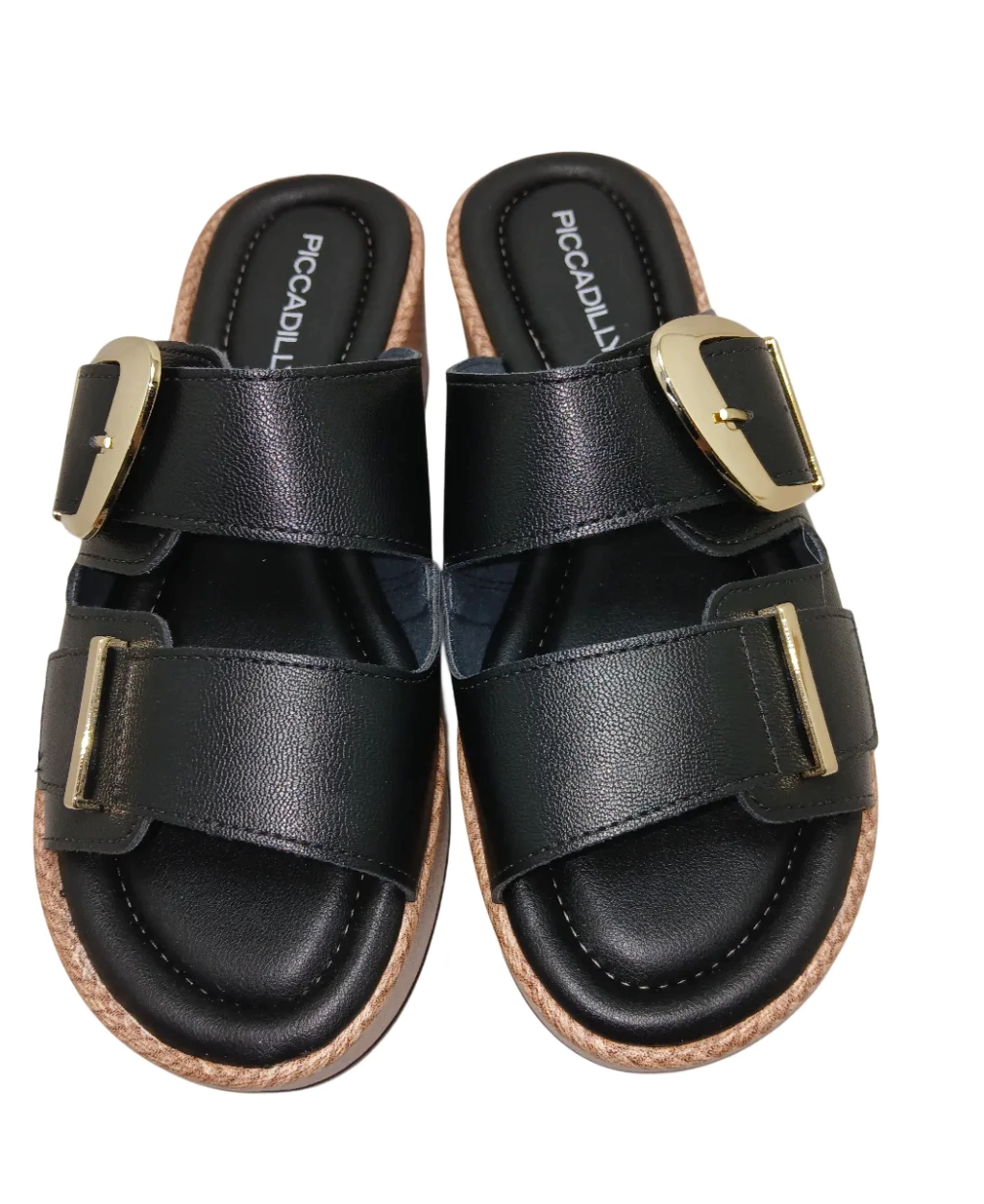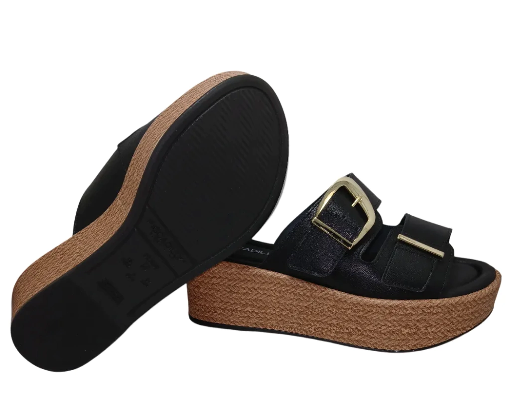 Zueco con dos fajas y hebilla regulable, que permite un ajuste personalizado y seguro. Su plataforma de 5.5 cm, forrada en simil yute, aporta un toque natural y moderno. La plantilla acolchada brinda un confort superior, ideal para uso diario. Elegí calidad y diseño en un calzado versátil y elegante.