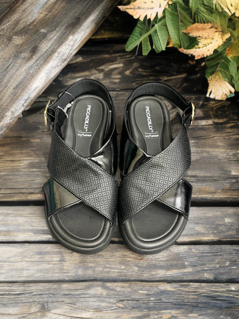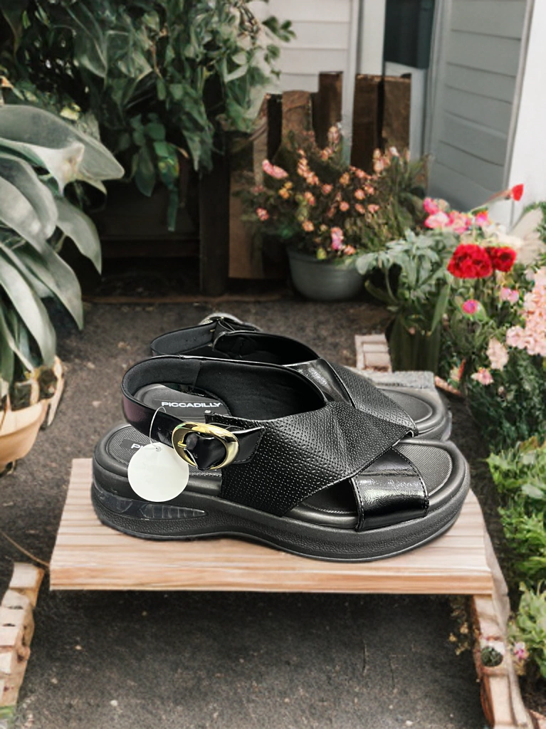 La Sandalia Piccadilly combina estilo y comodidad para el uso diario. Está elaborada en cuero sintético de alta calidad que asegura durabilidad y fácil mantenimiento. Su diseño cruzado ofrece un ajuste seguro y elegante, ideal para cualquier ocasión.