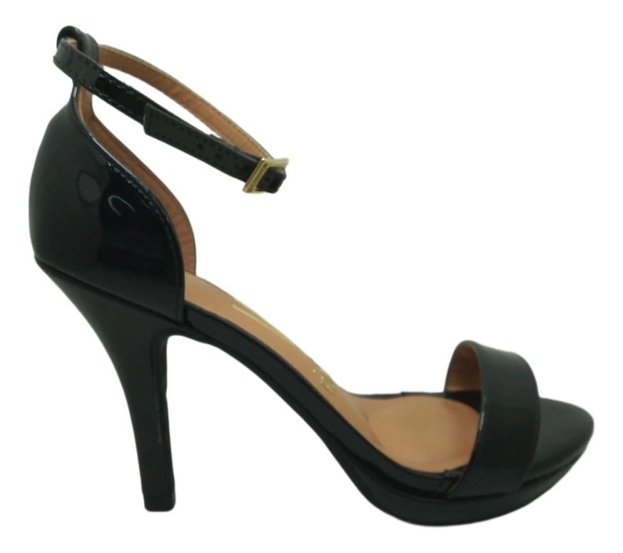 Sandalia Charol faja talón . Plantilla acolchonada. Taco de 10cm.